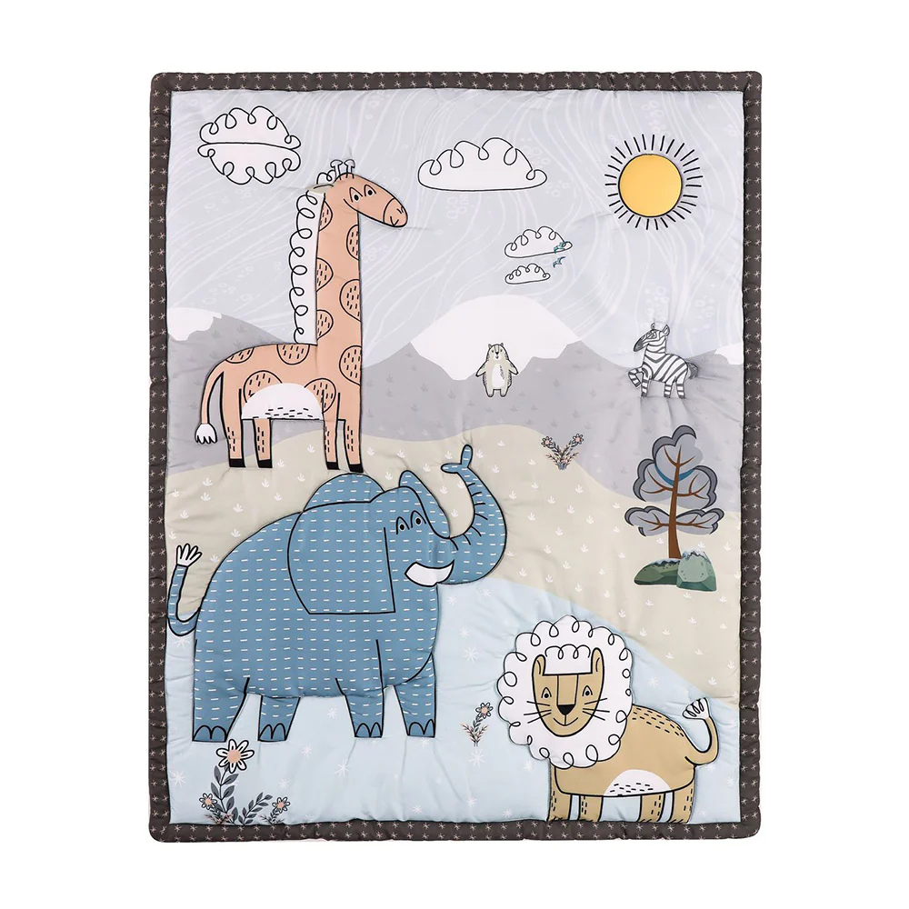 - A gender-neutral color palette makes this crib bedding set perfect for a little baby boy or girl.