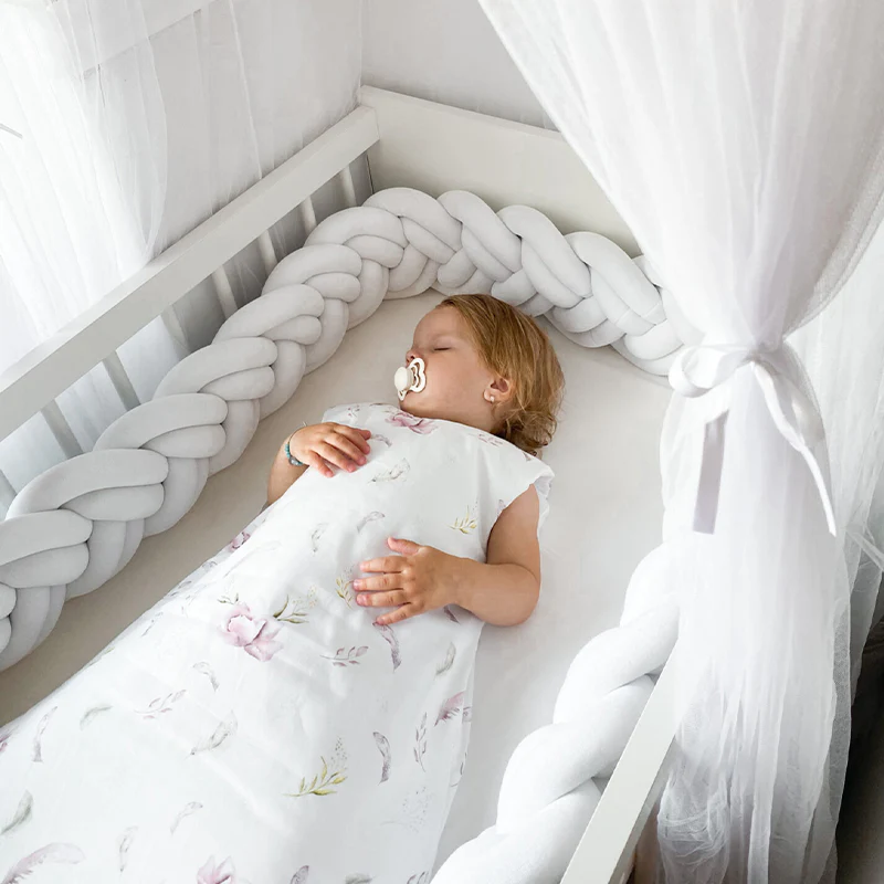 The new design 6-Strand Braided Crib Padding protects your lovely little one's hands and feet from getting stuck between crib spindles and protects the baby's head and body from hitting and bruising against the crib walls.