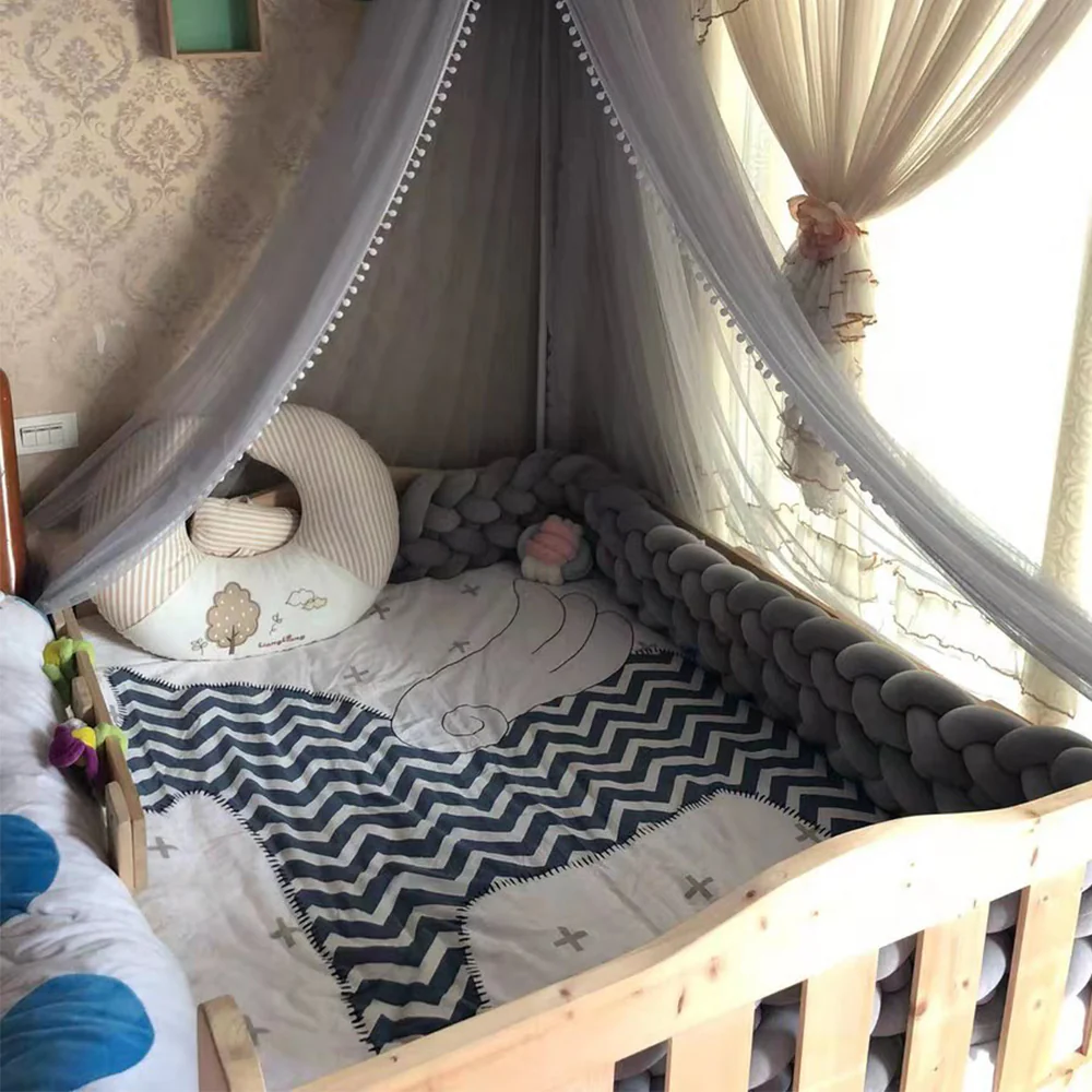The 6-Strand Braided Crib Bedding Long Cushion Padding and Bed Bolster protects your baby's hands and feet from getting stuck between crib spindles and protects the baby's head and body from hitting and bruising against the crib walls.