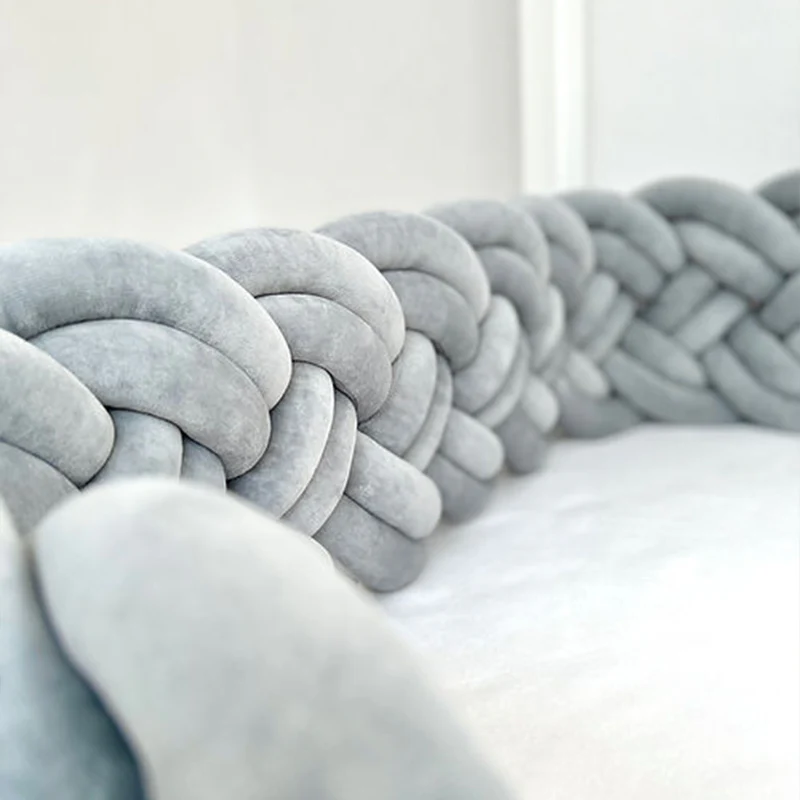 The new design 8-Strand Braided Crib Long Cushion protects your lovely little one's hands and feet from getting stuck between crib spindles as well as protects the baby's head and body from hitting and bruising against the crib walls.
