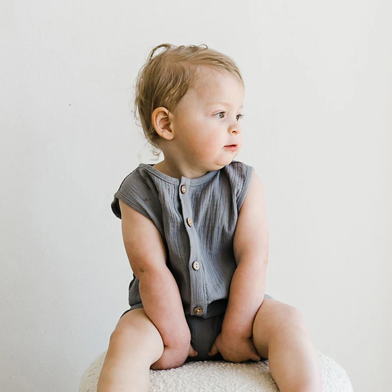 Cotton Gauze Romper with Bottom Snap