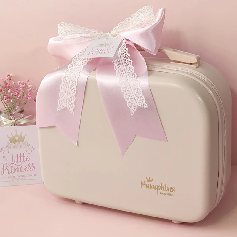 The suitcase is made of thickened PC material, with a ribbon bow and full of blessings. It can be portable and store toys after receiving the gift. The material is pressure-resistant and explosion-resistant.